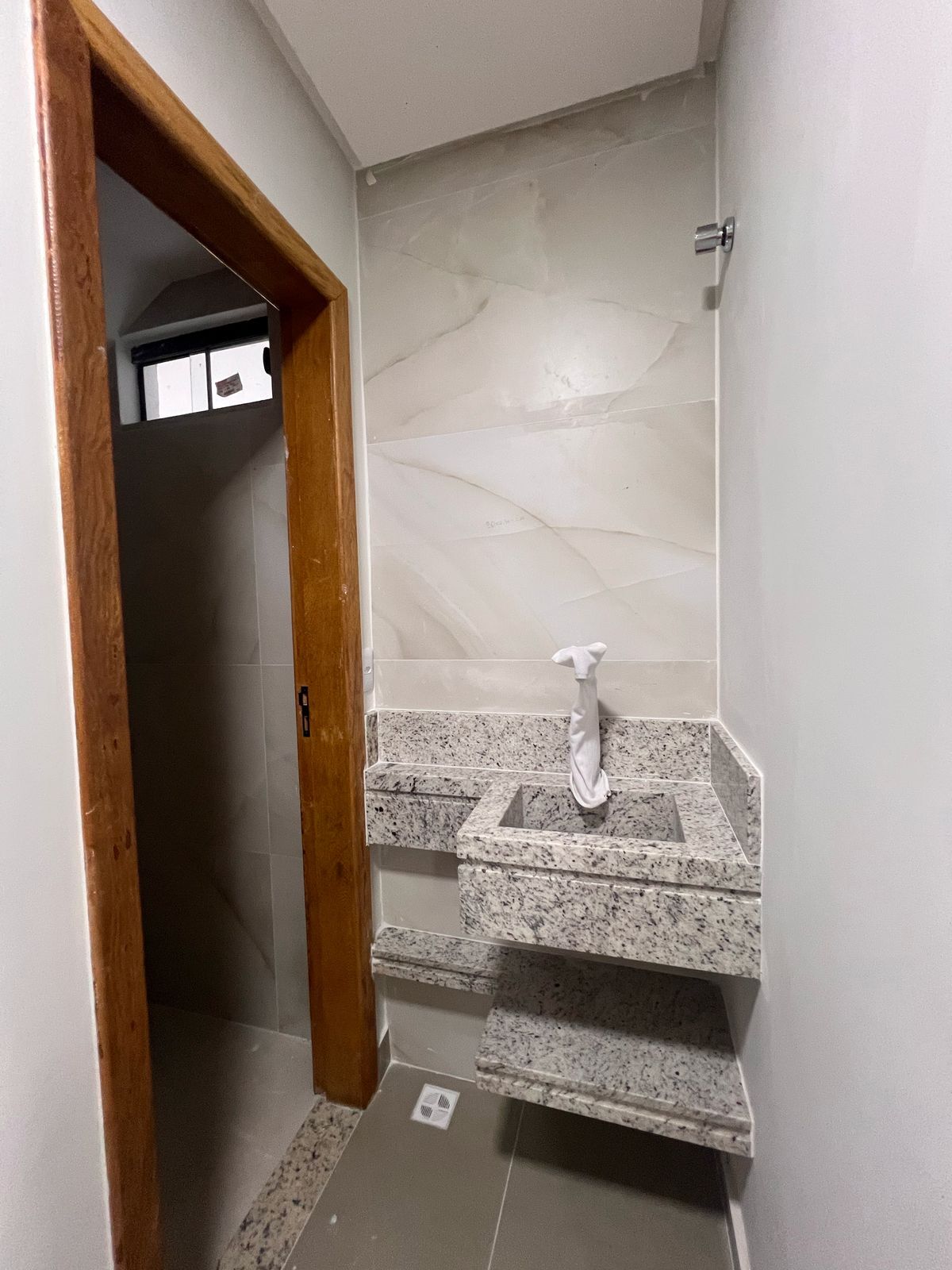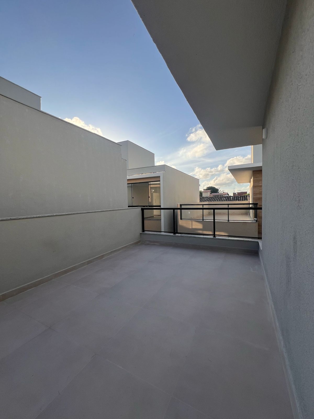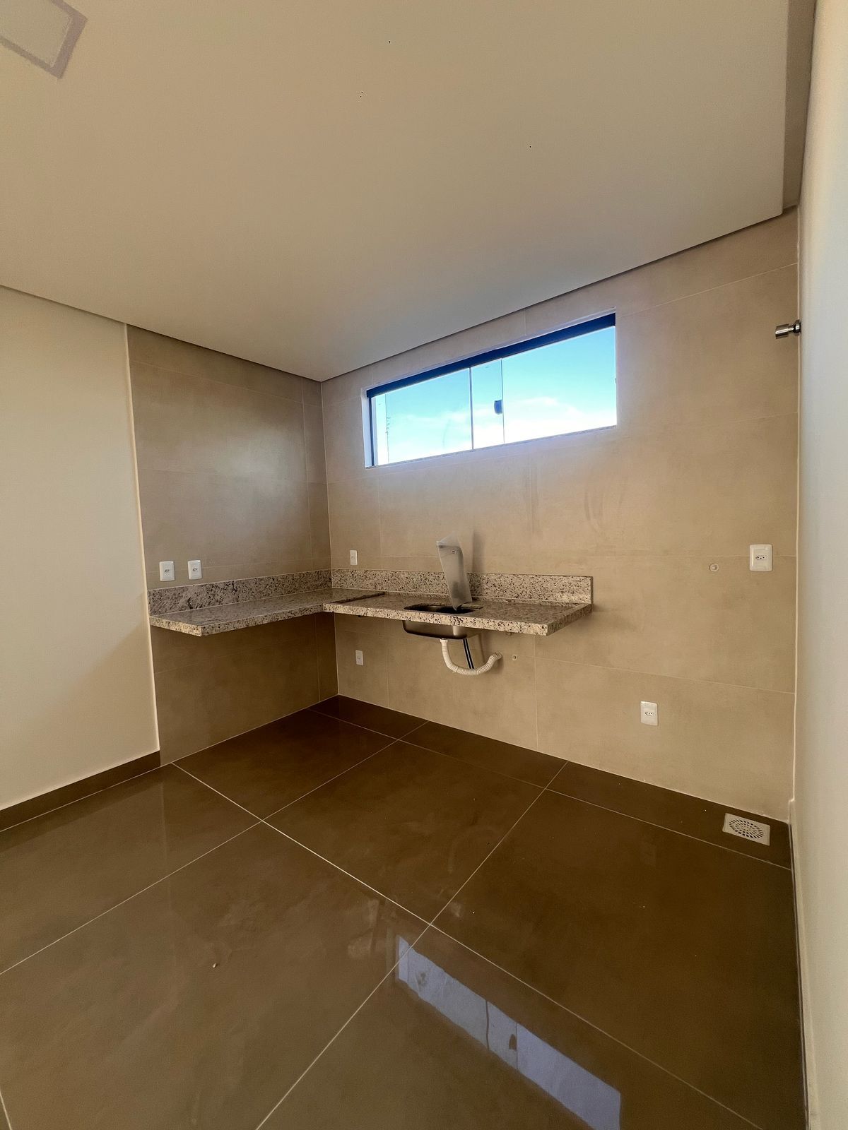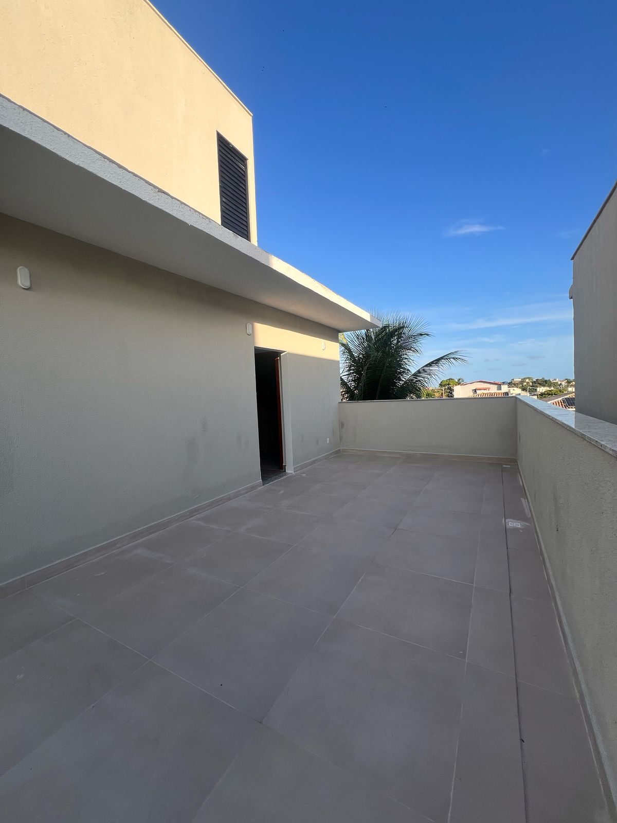 Terraço com possibilidade de espaço gourmet com pia e banheiro com um espaço coberto e outro descoberto