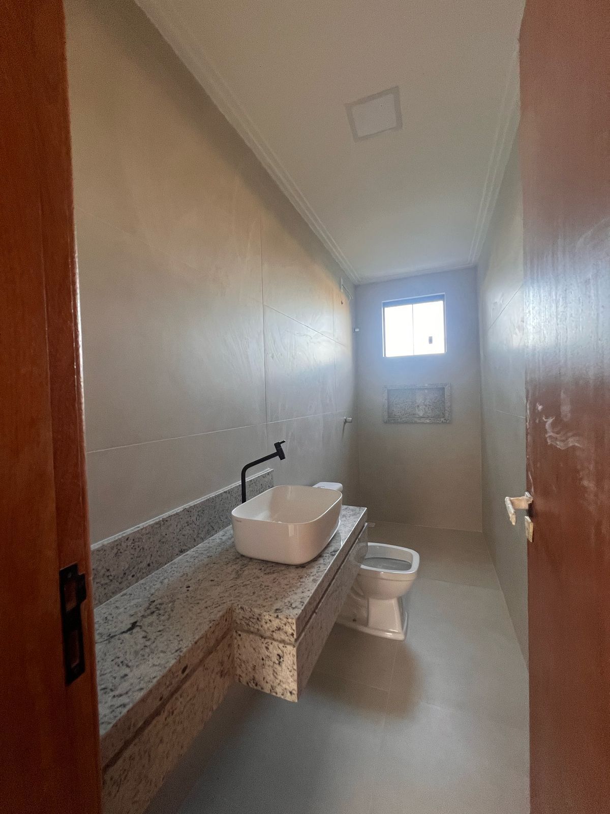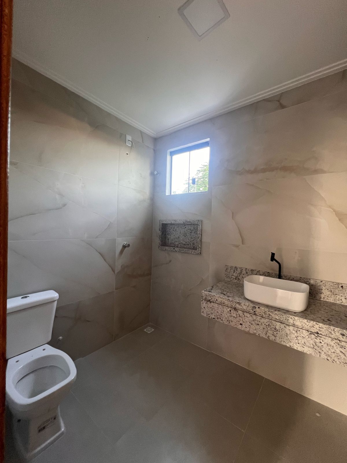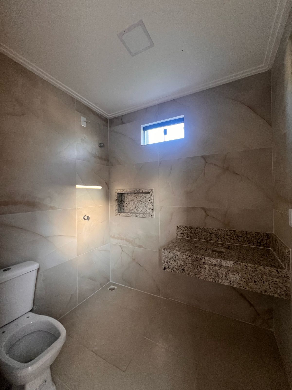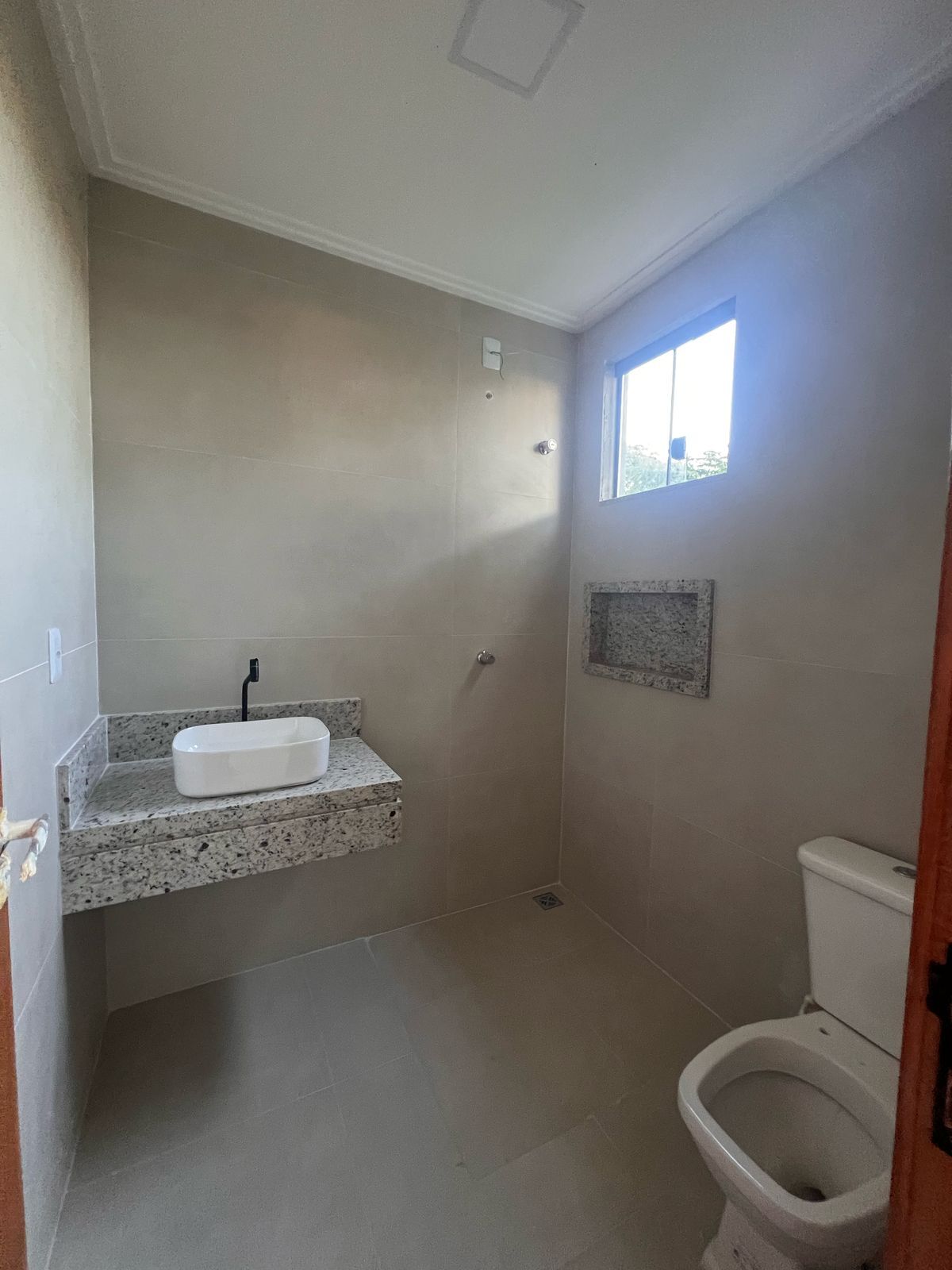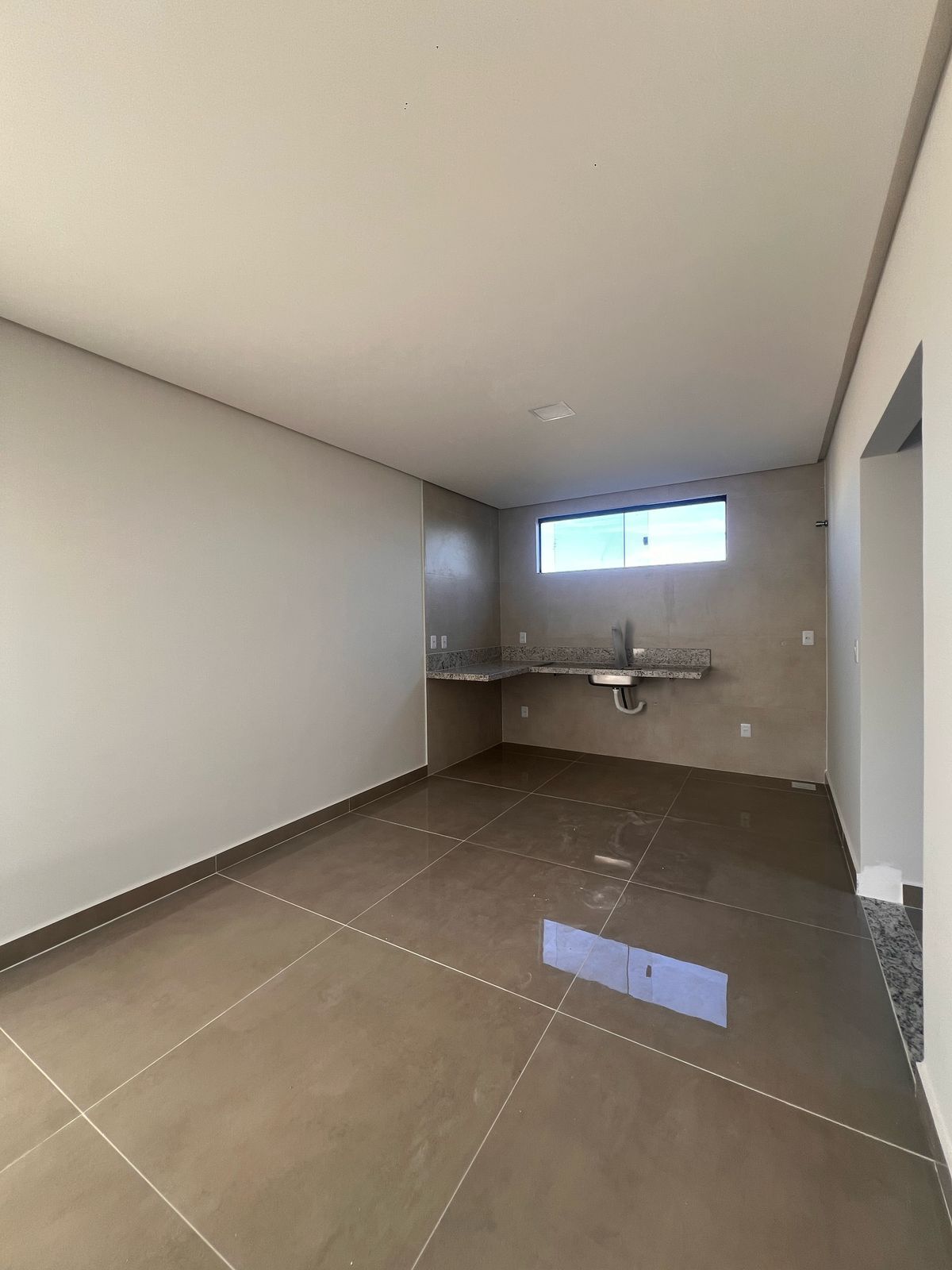 Terraço com possibilidade de espaço gourmet com pia e banheiro com um espaço coberto e outro descoberto